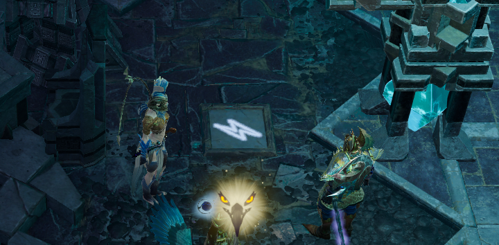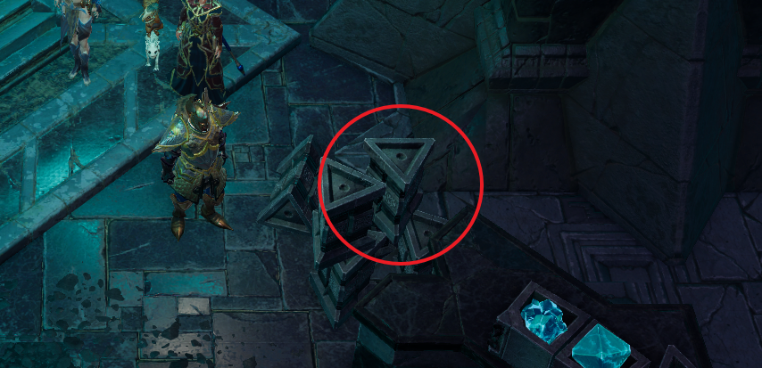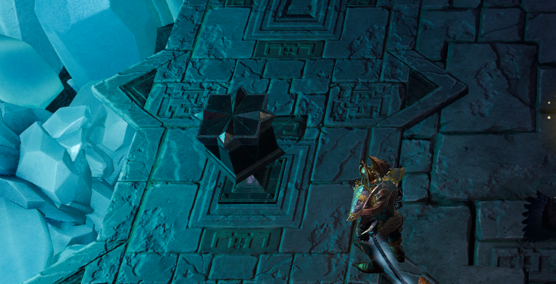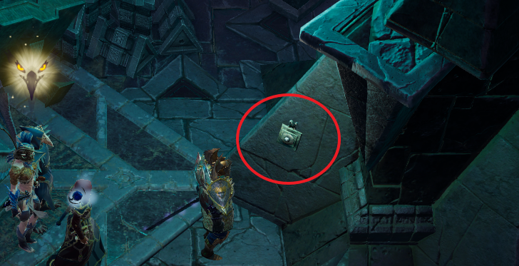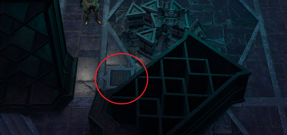 세 번째로 오른쪽 아래에 있는 특이한 석판을 찾아 작동시키자.
