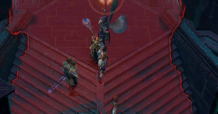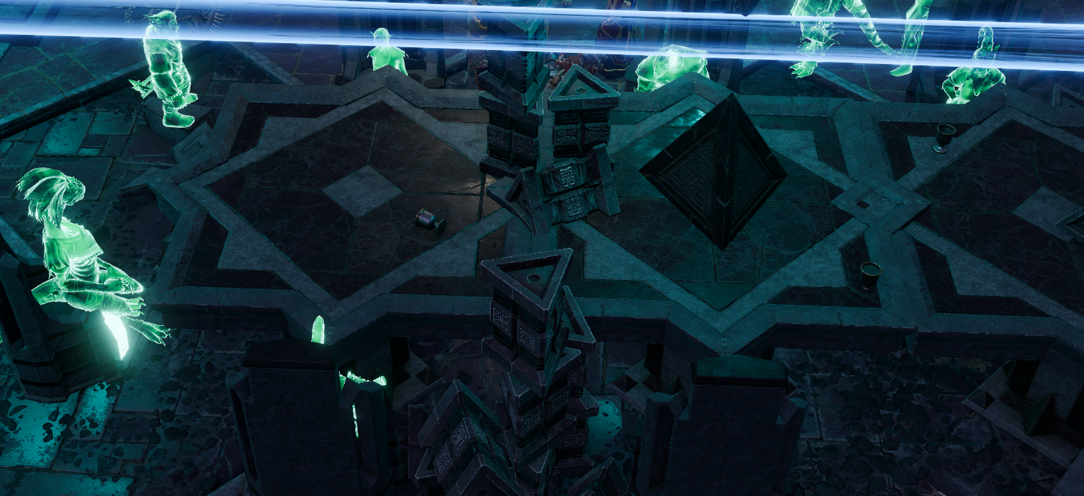 순간이동 조각상 기준으로 오른쪽 구역은 스승의 강당인데 여러 시체들이 바닥에 있을 것이다.