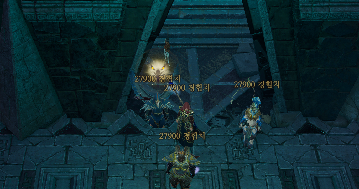 마지막으로 문 앞에 레버 2개 중에 오른쪽 레버를 작동시키면 문이 열리고 일행은 경험치를 받는다.