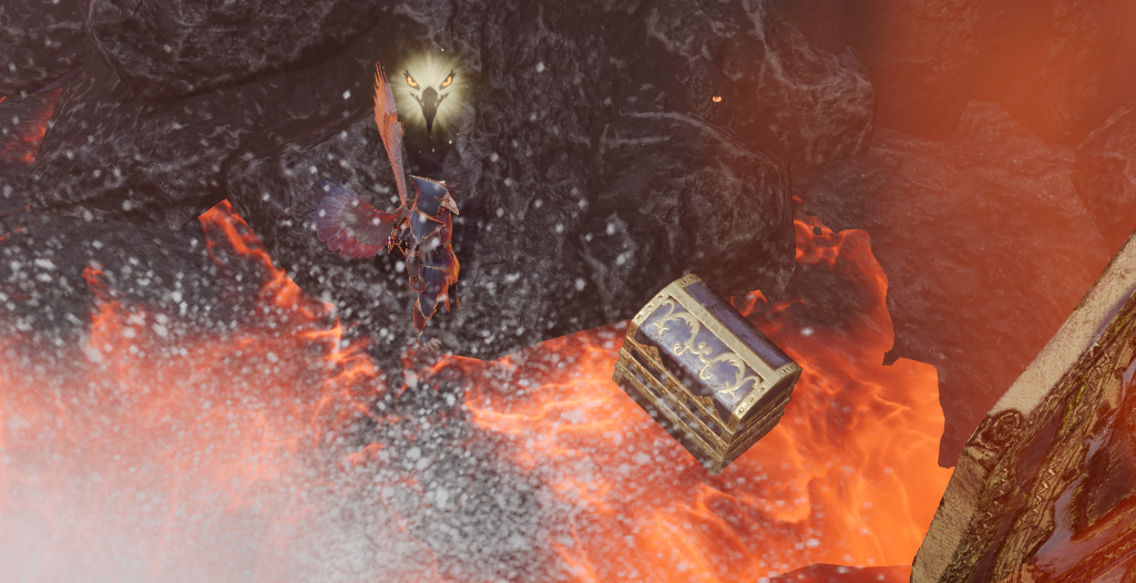 용암지대를 건너서 아래쪽의 염원의 장소를 왔다면 근처에 숨겨진 바닥이 있다.