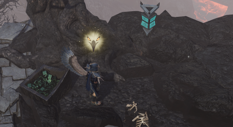 지도 중앙에서 아래쪽에 동상이 하나 있고 그 앞에 있는 성유물함에서 이터널의 유물 하나를 얻을 수 있다.