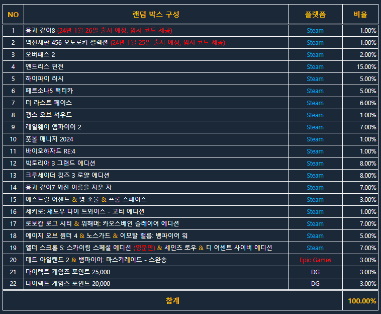 ■ 다이렉트 게임즈 랜덤 박스 이벤트