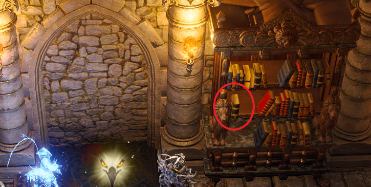 다음 구역으로 넘어가기 위해서는 오른쪽 책장에 보이는 산왕의 책을 누르면 문이 열린다.