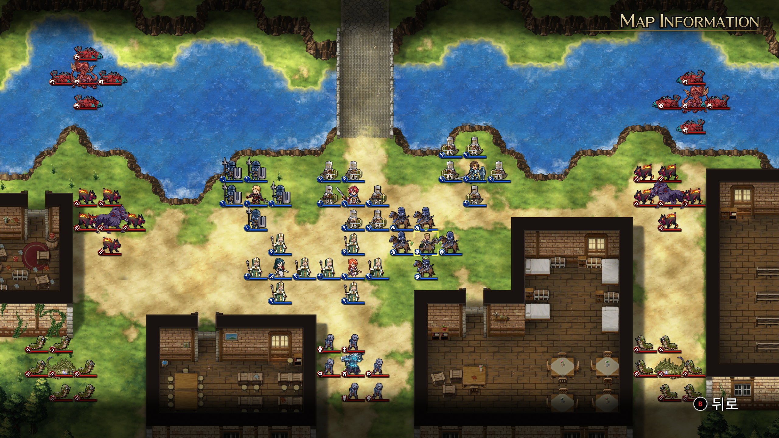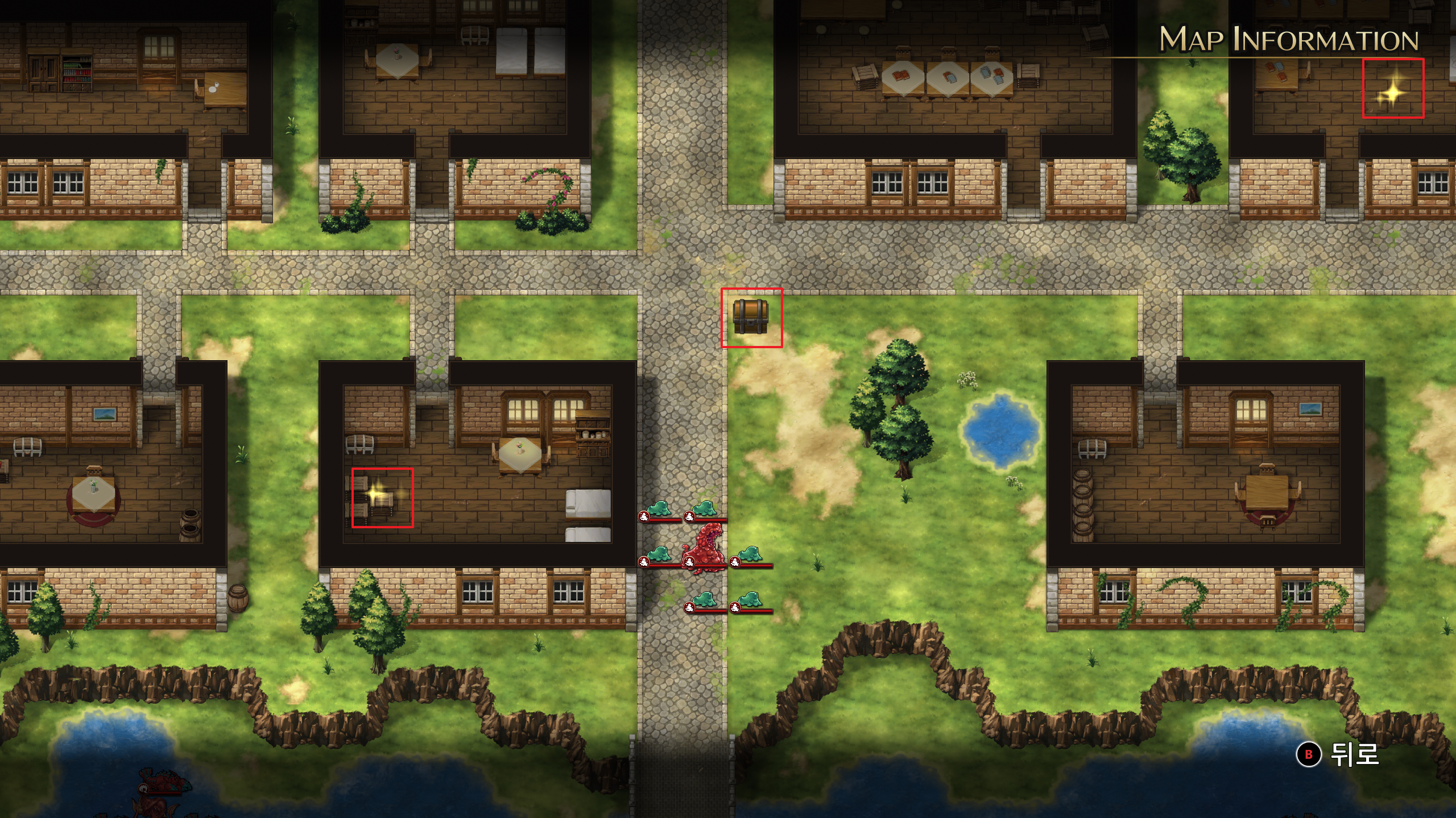 ※ 아군 영웅으로 위쪽 상자에 접근하면 마을사람과 란스의 석화가 풀린다.