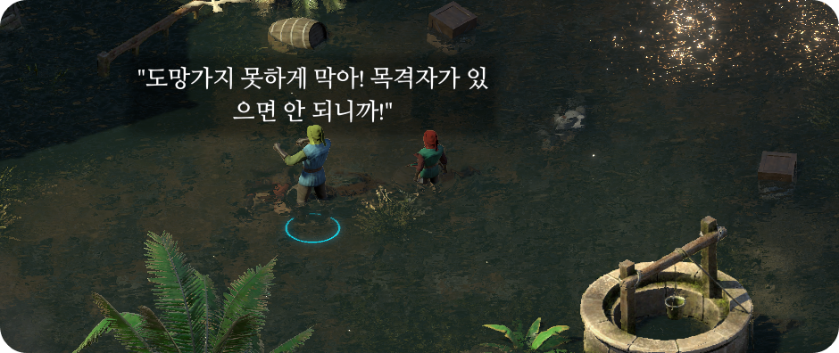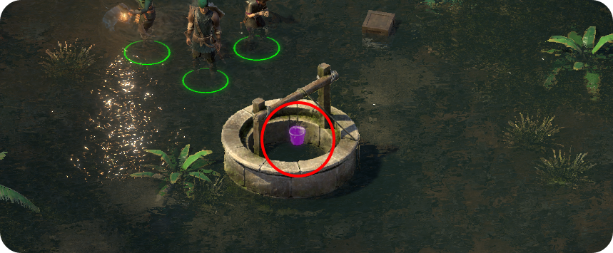 전투를 마치고 우물 한 가운데 양동이를 탐색하여 아이템을 챙기고 가자.