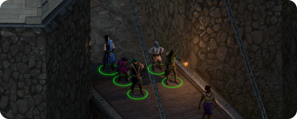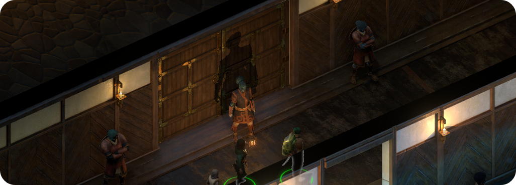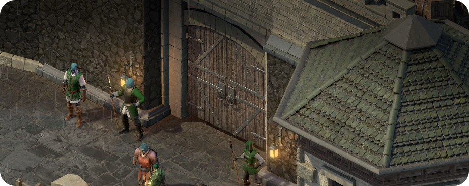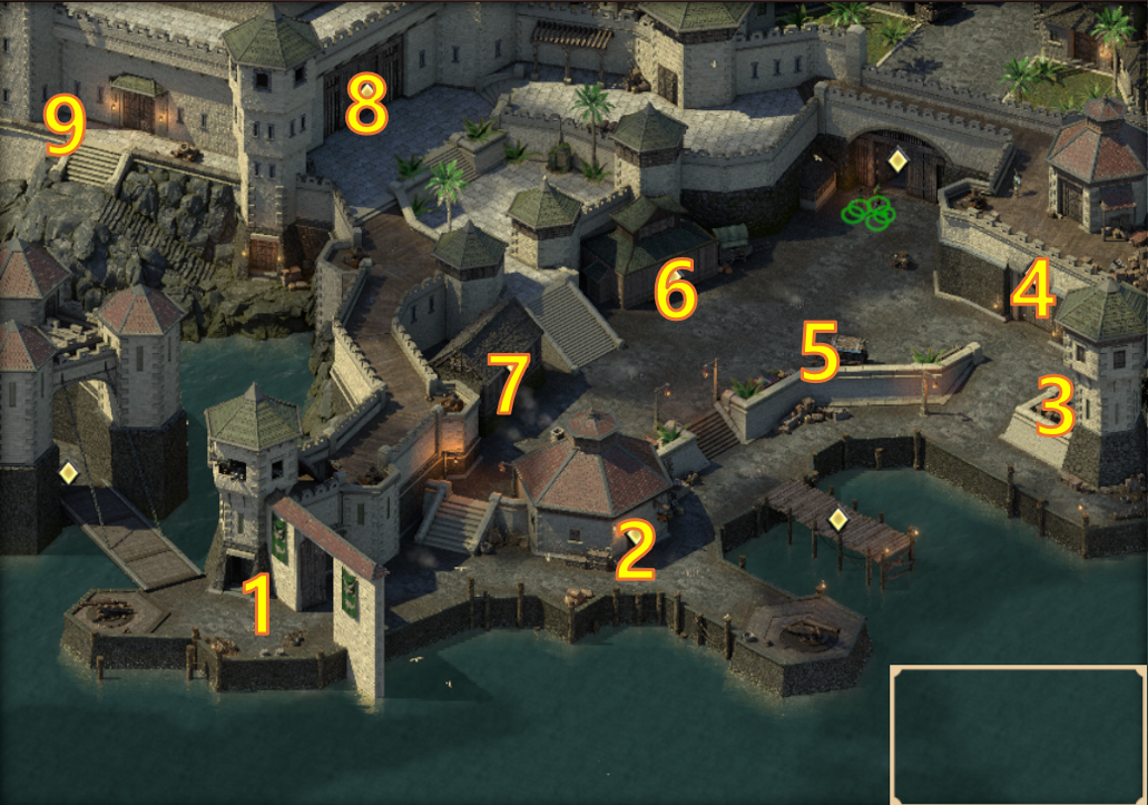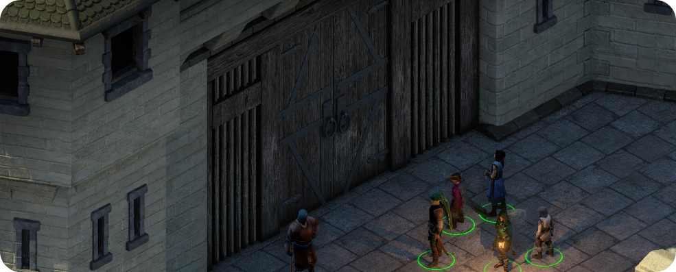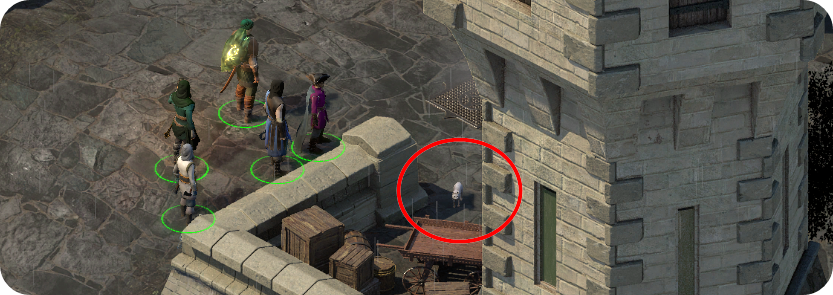 초대를 받거나 허세 12 이상이거나 사교술 7 이상이면 경비병을 설득하여 들어갈 수 있다.