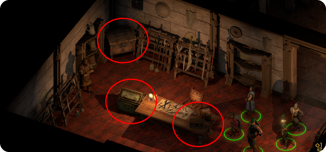 | 📢 1층 곳곳에는 전시대와 잠긴 서랍이 있을 것이다. 쓸만한 아이템들이 있으니 몰래 훔쳐가도록 하자. |