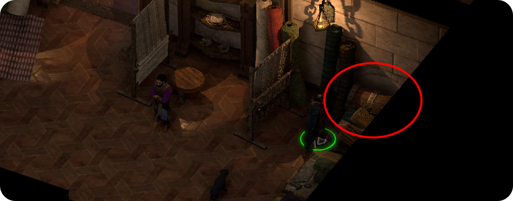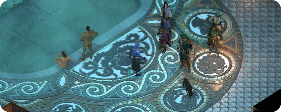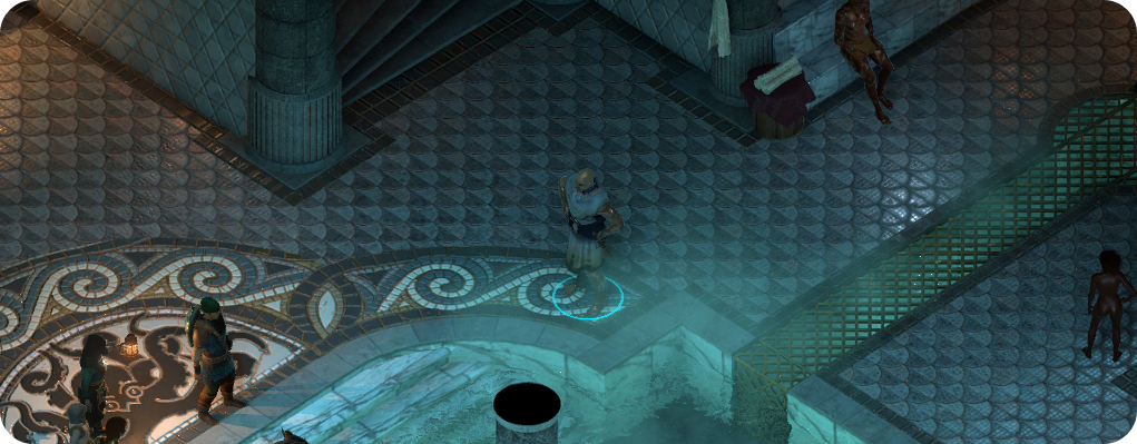 목욕탕 안으로 들어가려면 목욕탕 수행원에게 1000개의 동전을 주거나 간파 4 / 사교술 4 이상이면 900개로 할인받아 들어갈 수 있다.