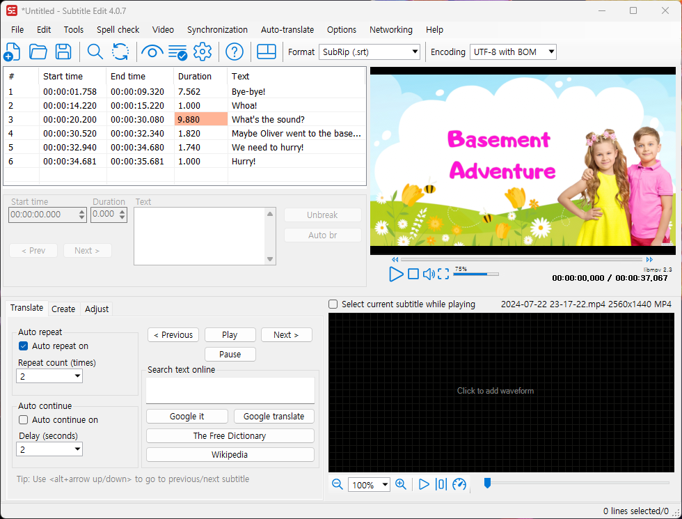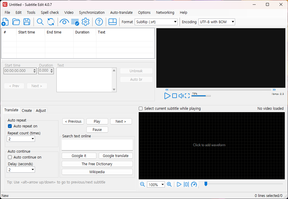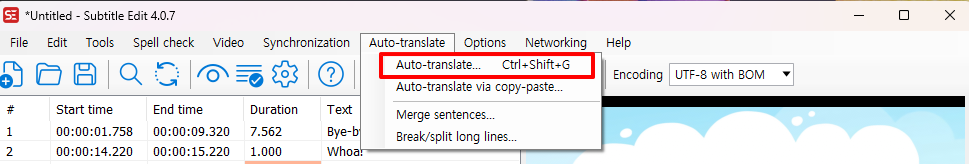 여러가지 방법이 있으나 Subtitle Edit를 이용한 기계 번역 방법은 간략히 소개하고자 한다.