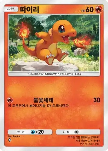 파이리 | ⬛ 불꽃세레 (30) ※ 추가 효과: 이 포켓몬에서 불 에너지를 1개 트래쉬한다. |