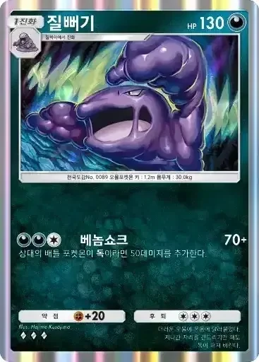 질뻐기 | ⬛⬛⬜ 베놈쇼크 (70+) ※ 추가 효과: 상대의 배틀 포켓몬이 독이라면 50데미지를 추가한다. |