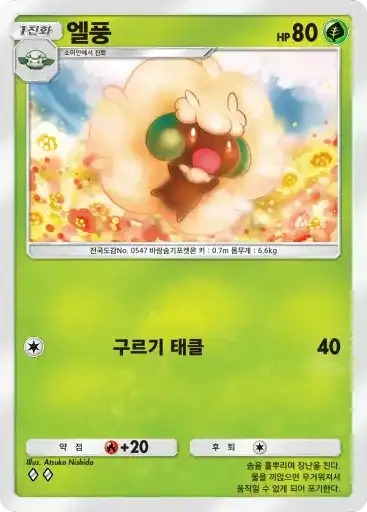 드레디어 | ⬛⬛ 리프서플라이 (50) ※ 추가 효과: 자신의 에너지존에서 풀 에너지를 1개 내보내 벤치의 풀 포켓몬에게 붙인다. |