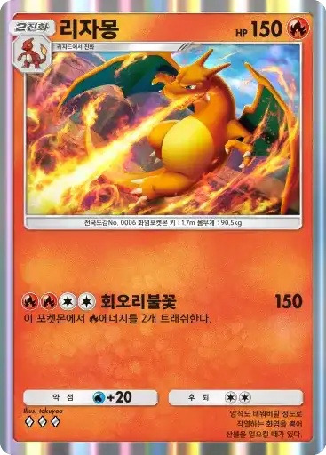 리자몽 | ⬛⬛⬜⬜ 회오리불꽃 (150) ※ 추가 효과: 이 포켓몬에서 불 에너지를 2개 트래쉬한다. |
