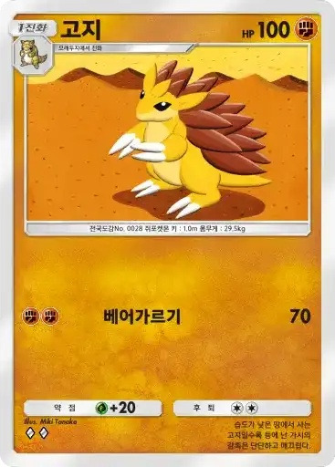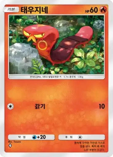 다태우지네 | ⬛⬜⬜⬜ 불대문자 (130) ※ 추가 효과: 이 포켓몬에서 불 에너지를 1개 트래쉬한다. |