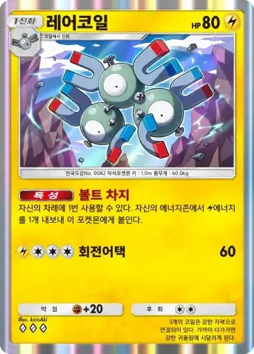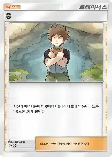 웅 | 자신의 에너지존에서 격투 에너지를 1개 내보내 딱구리 또는 롱스톤에게 붙인다. | 피카츄 |