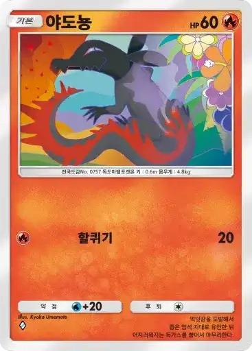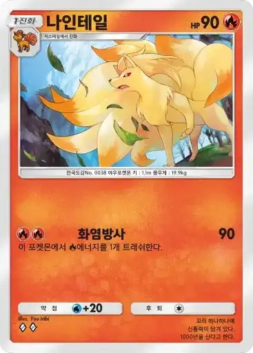 나인테일 | ⬛⬛ 화염방사 (90) ※ 추가 효과: 이 포켓몬에서 불 에너지를 1개 트래쉬한다. |