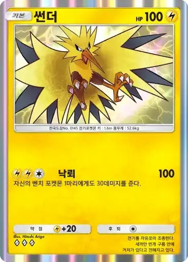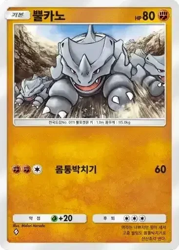 윈디 | ⬛⬛⬜ 히트태클 (100) ※ 추가 효과: 이 포켓몬에게도 20데미지를 준다. |