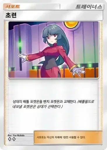 초련 | 상대의 배틀 포켓몬을 벤치 포켓몬과 교체한다. (배틀필드로 내보낼 포켓몬은 상대가 선택한다.) | 리자몽 |