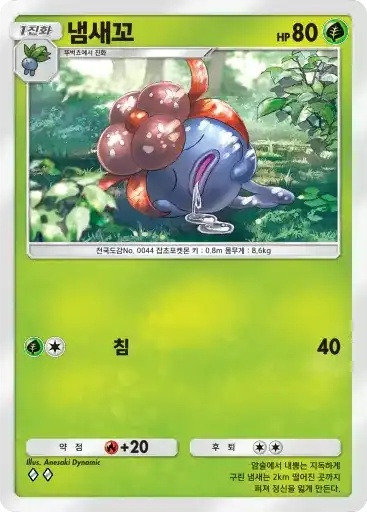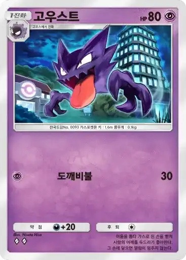 또도가스 | 특성: 새어나가는 가스 (이 포켓몬이 배틀필드에 있다면 자신의 차례에 1번 사용할 수 있다. 상대의 배틀 포켓몬을 독으로 만든다.) ⬛ 몸통박치기 (30) |