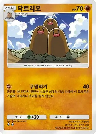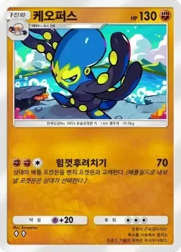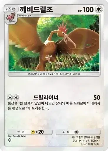 깨비드릴조 | ⬜⬜ 드릴라이너 (50) ※ 추가 효과: 동전을 1번 던져서 앞면이 나오면 상대의 배틀 포켓몬에서 에너지를 랜덤으로 1개 트래쉬한다. |