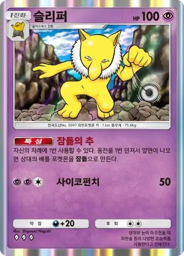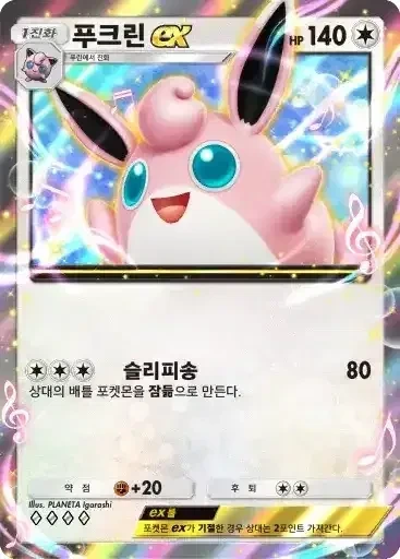 푸크린 ex | ⬜⬜⬜ 슬리피송 (80) ※ 추가 효과: 상대의 배틀 포켓몬을 잠듦으로 만든다. |
