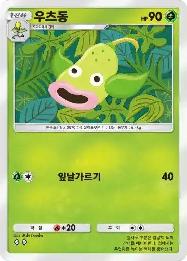 우츠보트 | 특성: 향기의 덫 (이 포켓몬이 배틀필드에 있다면 자신의 차례에 1번 사용할 수 있다. 상대 벤치의 기본 포켓몬을 1마리 선택해서 배틀 포켓몬과 교체한다.) ⬛⬜ 덩굴채찍 (60) |
