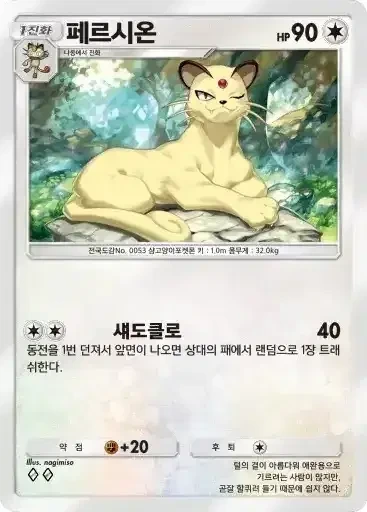 페르시온 | ⬜⬜ 섀도클로 (40) ※ 추가 효과: 동전을 1번 던져서 앞면이 나오면 상대의 패에서 랜덤으로 1장 트래쉬한다. |
