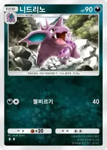 니드킹 | ⬛⬛⬜ 독뿔 (90) ※ 추가 효과: 상대의 배틀 포켓몬을 독으로 만든다. |