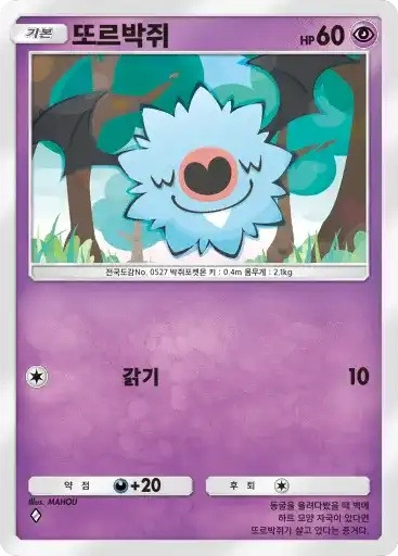 꼬렛 | ⬜ 갉기 (20) | 40 | 격투+20 | 1개 | 모든 팩 |
