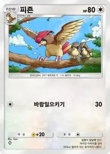 피죤투 | 특성: 쫓아내기 (자신의 차례에 1번 사용할 수 있다. 상대의 배틀 포켓몬을 벤치 포켓몬과 교체한다. 배틀필드로 내보낼 포켓몬은 상대가 선택한다.) ⬜⬜ 날개치기 (70) |