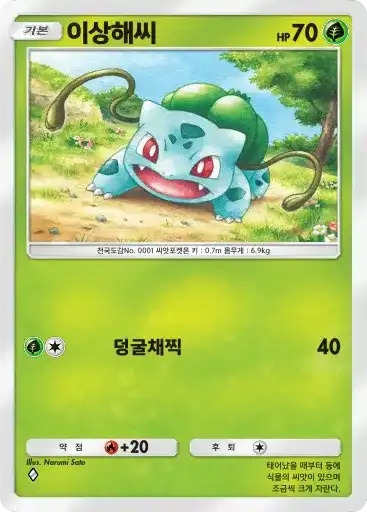 이상해씨 | ⬛⬜ 덩굴채찍 (40) | 70 | 불+20 | 1개 | 뮤츠 |